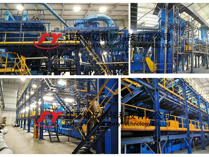 2、按一定配比進入生產線的物料,經由皮帶輸送機等輸送設備進入預加熱滾筒烘干機,進行初步的烘干,然后進入下一步工序;